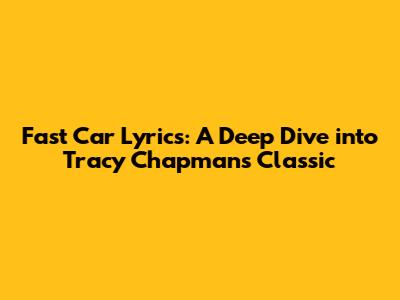 Fast Car Lyrics: A Deep Dive Into Tracy Chapman's Classic