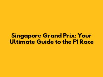 Singapore Grand Prix: Your Ultimate Guide To The F1 Race